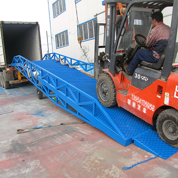 移動登車橋是實現(xiàn)貨物快速裝卸的專用輔助設(shè)備,它的高度調(diào)節(jié)功能使貨車與庫房的貨臺之間架起一座橋梁,叉車等搬運車輛通過它能直接駛?cè)胴涇噧?nèi)部進行貨物的批量裝卸,僅需單人作業(yè),即可實現(xiàn)貨物的快速裝卸。移動液壓登車橋使企業(yè)減少大量勞力,提高工作效率,獲取更大經(jīng)濟效益。臺面均設(shè)計為網(wǎng)格狀鋼板,這種結(jié)構(gòu)能保證具有很好的強度,又具有防滑功能,還能方便地清掃工作臺面,使它能經(jīng)常地保持清潔、美觀。移動液壓登車橋無須外接電源,通過手搖泵做動力能輕松地在其整個調(diào)整范圍內(nèi)按50mm的倍數(shù)進行高度的調(diào)整??梢猿浞诌m應(yīng)各種不同高度的貨車.